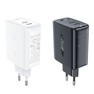 Acefast quick charger. It has two USB Type C ports that enable charging with power up to 50W. It allows you to quickly charge devices, incl. in PPS, Power Delivery, Quick Charge 3.0, AFC and FCP standards. It is made of fireproof PC material. It has been equipped with many protections, such as overheating, overvoltage, high voltage or overload. The electronic components of the charger are made in GaN technology, i.e. they are based on gallium nitride, not on silicon. GaN means better work efficiency and lower energy consumption.