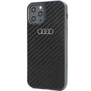 „Audi“ anglies pluošto iPhone 12/12 Pro 6.1" juodas/juodas kietas dėklas AU-TPUPCIP12P-R8/D2-BK