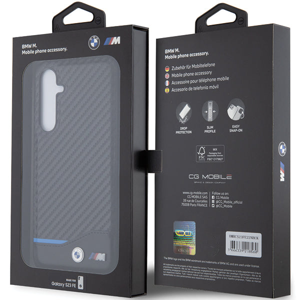 The top of the cases from the Leather Carbon collection is covered with carbon fabric and natural leather, which gives your iPhone a unique and unusual look. BMW is known and appreciated for its elegant designs and exquisite finishes, which are perfectly showcased in this collection of protective cases. The cover is additionally decorated with blue stitching, which is an integral color with the colors of the BMW brand. Delicate leather, a unique carbon fabric motif and stylish details make the collection give all devices a classic, elegant shape. The whole is topped with a small metal BMW and M package logo, which also confirms the highest quality and authenticity of the product.