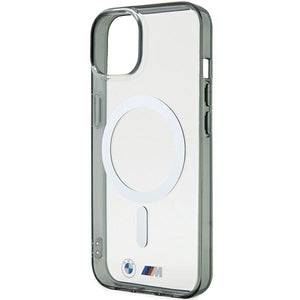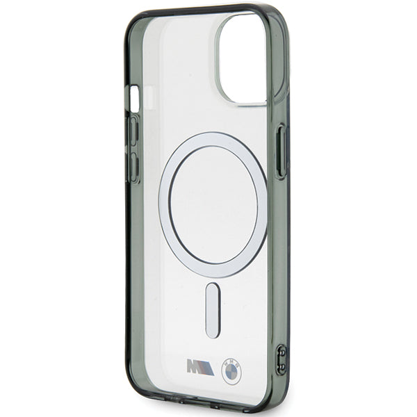 BMW sidabrinis žiedas „MagSafe iPhone 15“ dėklas – skaidrus