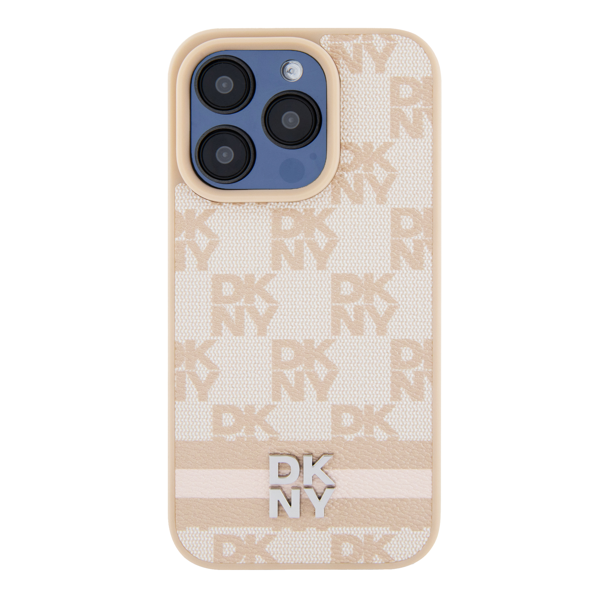 DKNY Leather Checkered Mono Pattern & Printed Stripes case for iPhone 15 / 14 / 13 - pink
