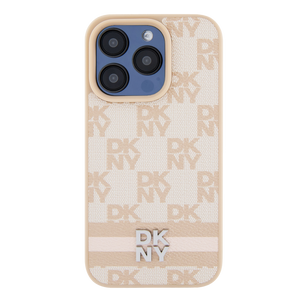 DKNY Leather Checkered Mono Pattern & Printed Stripes case for iPhone 15 / 14 / 13 - pink