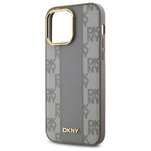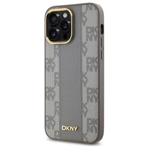 DKNY Leather Checkered Mono Pattern MagSafe iPhone 14 Pro Max Case - Beige