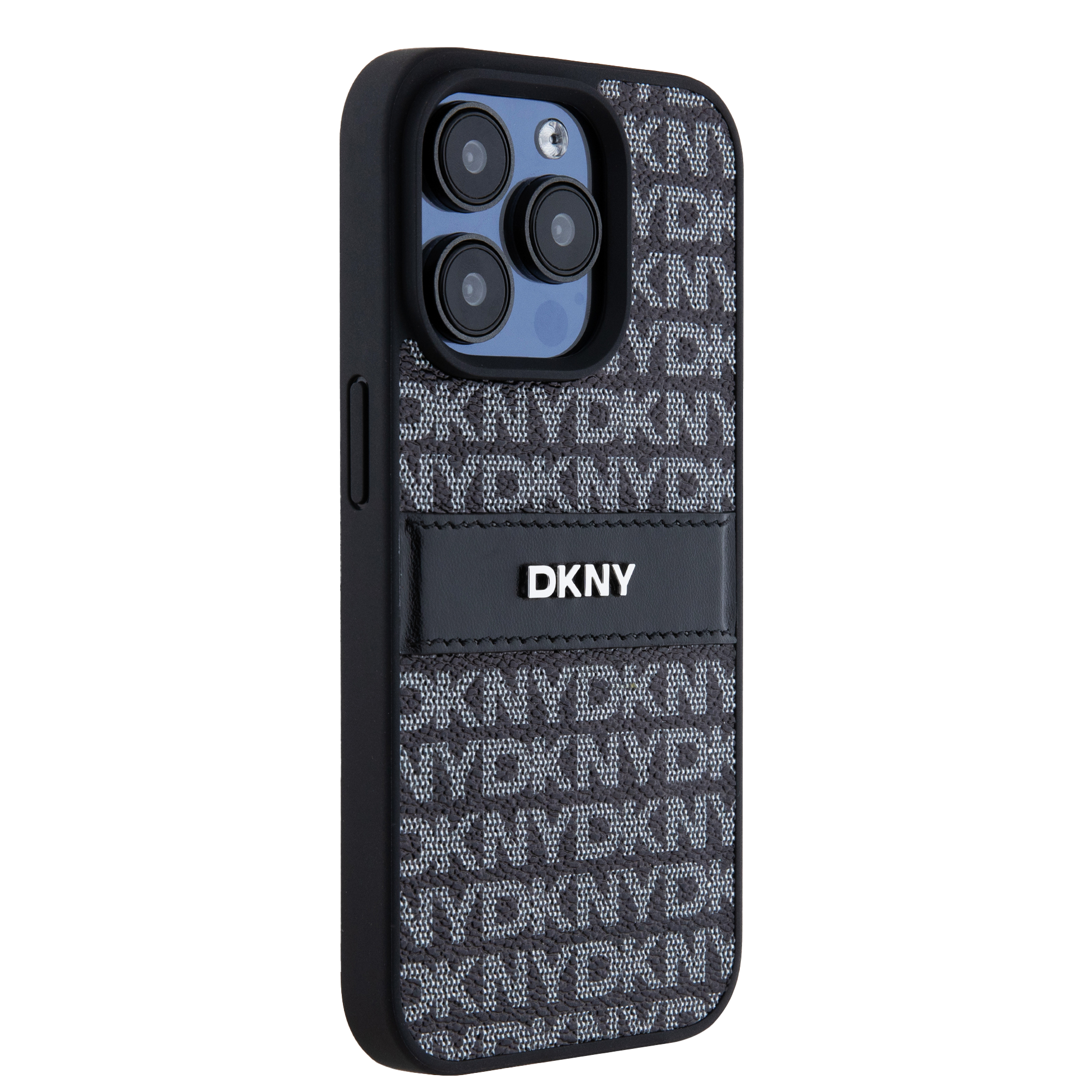 DKNY Leather Mono Stripe & Metal Logo Case for iPhone 15/14/13 - Black