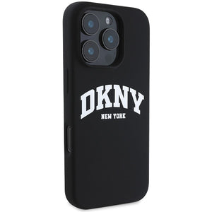 DKNY Silicone White Printed Logo MagSafe iPhone 16 Pro Case - Black