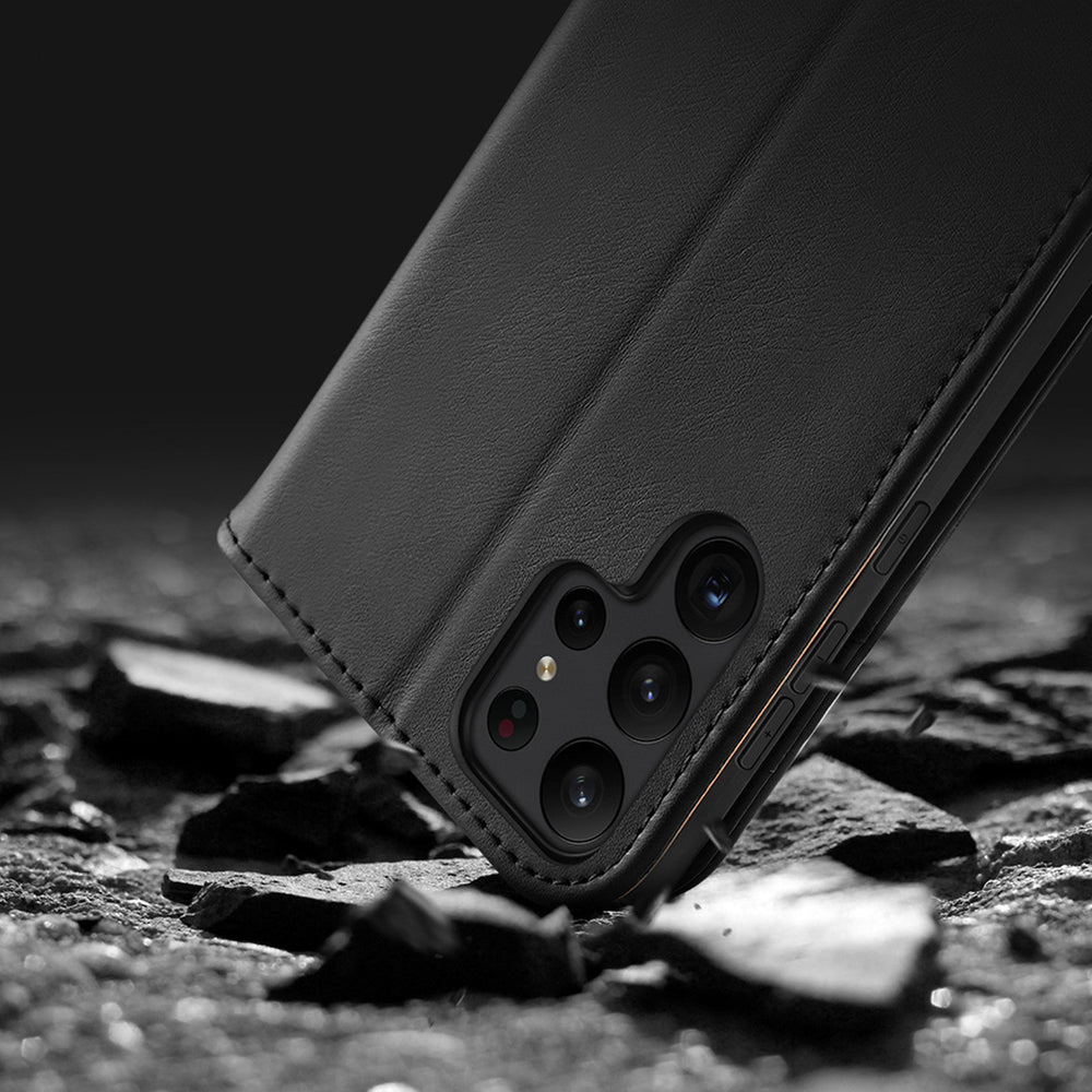 „Samsung Galaxy S23+“ dėklas iš „Dux Ducis Hivo“ serijos su atverčiamu dangteliu ir RFID blokavimu, juodos spalvos