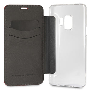 „Ferrari On Track“ dėklas – miesto kolekcija. Lengvas apsauginis dėklas su elegantiška išvaizda, kuris atsidaro kaip knyga.