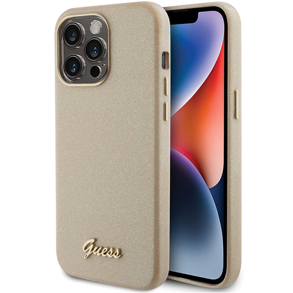 Guess Glitter Glossy Script case for iPhone 15 Pro - gold