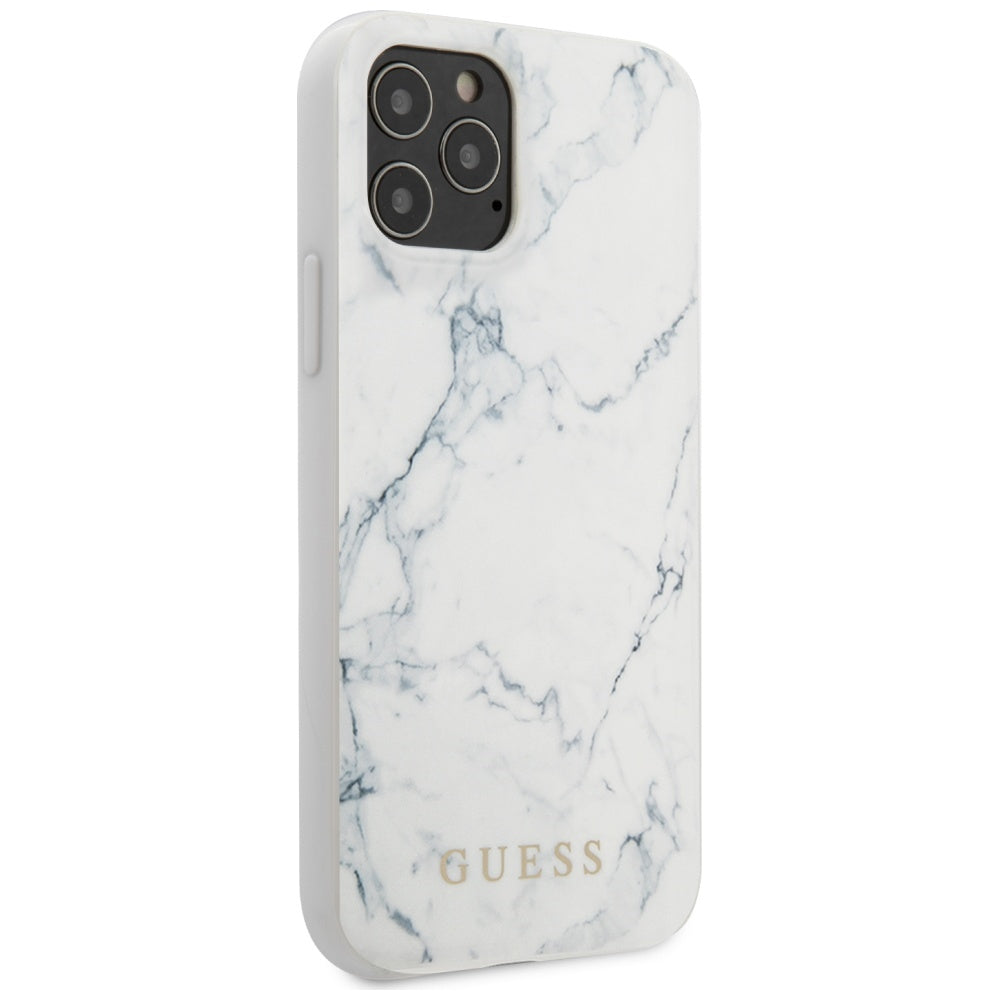 Guess GUHCP12LPCUMAWH iPhone 12 Pro Max 6,7" baltos spalvos kietas dėklas, marmuras