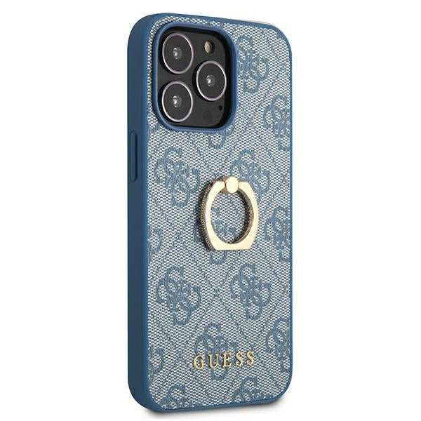 Guess GUHCP13X4GMRBL iPhone 13 Pro Max 6,7" mėlynas kietas dėklas 4G su žiediniu stovu