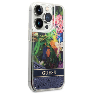 Guess GUHCP14LLFLSB iPhone 14 Pro 6.1 "blue / blue hardcase Flower Liquid Glitter