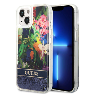 Guess GUHCP14MLFLSB iPhone 14 Plus 6.7 "blue / blue hardcase Flower Liquid Glitter