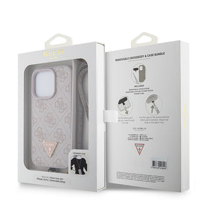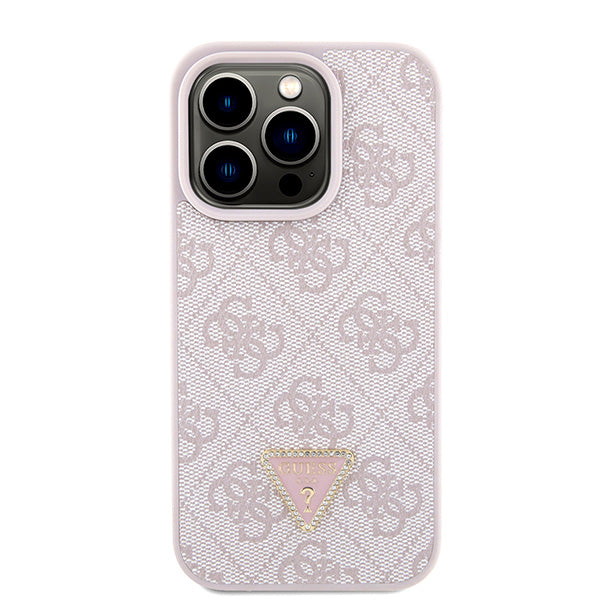 „Guess“ GUHCP15LP4TDSCPP iPhone 15 Pro 6.1" kietas dėklas, rausvas/rožinis, per petį, metalinis, su logotipu.