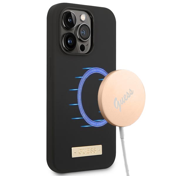 Guess GUHMP14LSBPLK iPhone 14 Pro 6.1" black/black hard case Silicone Logo Plate MagSafe