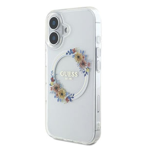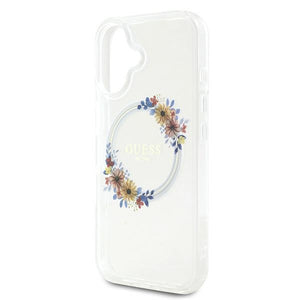 Guess IML Flowers Wreath MagSafe iPhone 16 Plus Case - Clear