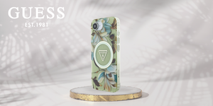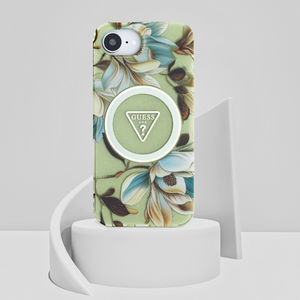 Išskirtinis apsauginis dėklas iš garsaus prekės ženklo „Guess“ – tai aukščiausio lygio elegancijos ir stiliaus derinys. Dėklas pagamintas iš aukštos kokybės polikarbonato ir poliuretano . Blizgantis dėklo paviršius papuoštas spalvingomis gėlėmis ir „MagSafe“ žiedu.