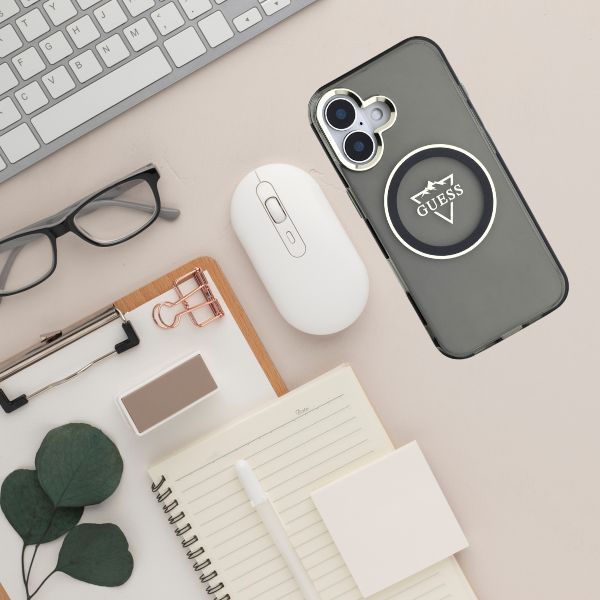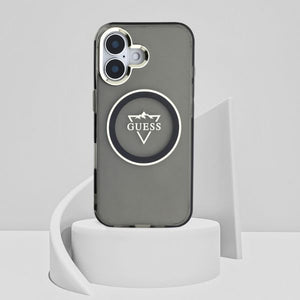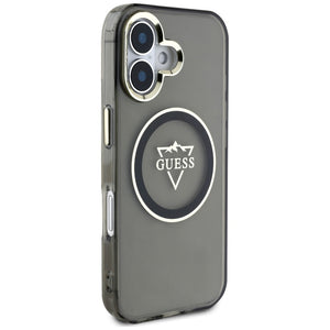 „Guess IML Metal Mountain Logo MagSafe“ dėklas, skirtas „iPhone 16“ – juodas