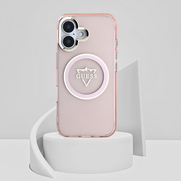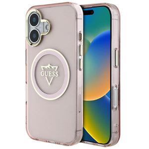 „Guess IML Metal Mountain Logo MagSafe iPhone 16“ dėklas – rožinis