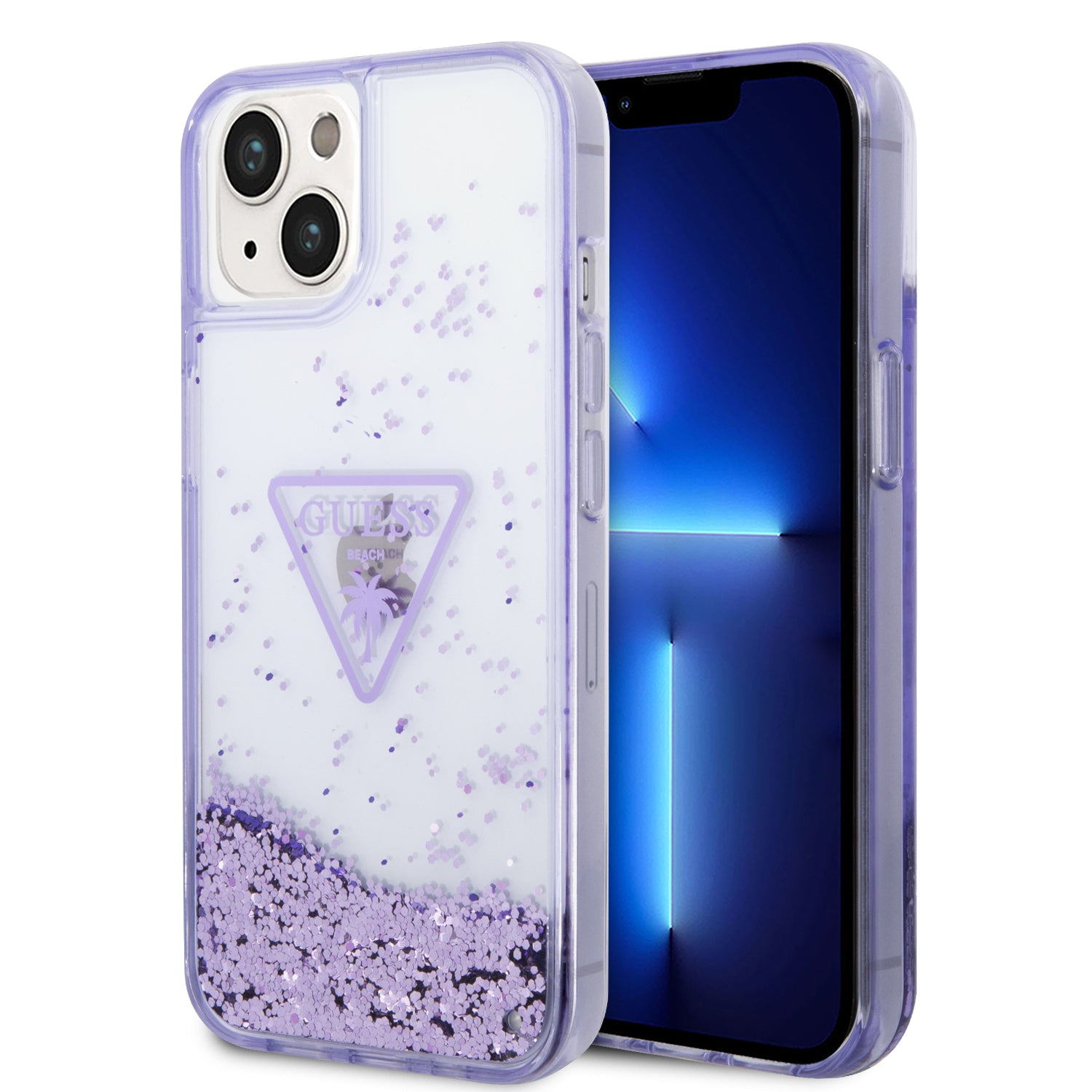 Guess Liquid Glitter Palm Collection case for iPhone 14 Plus 6.7" - purple