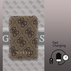 „Guess“ indukcinė išorinė baterija 15W GUPB5FP4EMGW 5000mAh ruda/ruda 4G odinė metalinė logotipas „MagSafe“