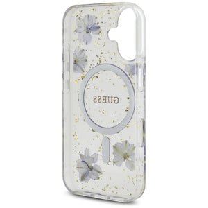 „Guess“ blizgučiais puoštas „MagSafe“ dėklas su dervos gėlėmis