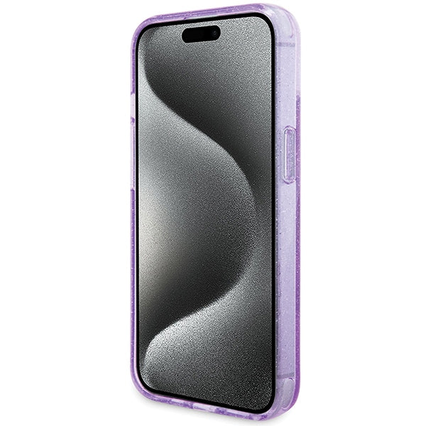 Guess Ring Stand Script Glitter MagSafe case for iPhone 15