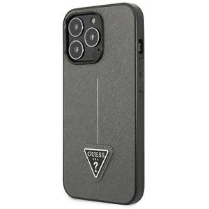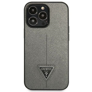 „Guess Saffiano“ trikampio formos logotipo dėklas, skirtas „iPhone 13 Pro“ / 13 6.1 colio – sidabrinis