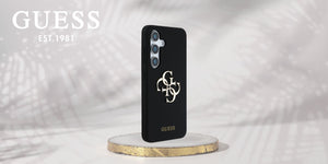 The chic Guess case from the Silicone Big 4G Logo Bottom Script collection features an elegant, recognizable 4G pattern signed with the gold Guess logo.