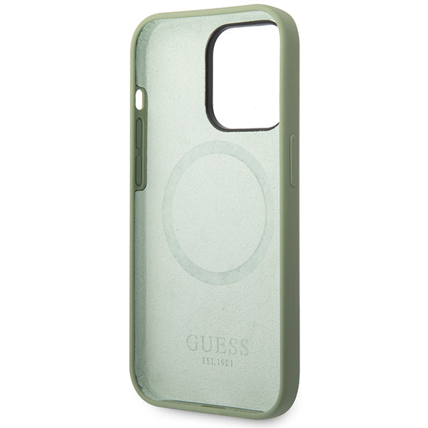Guess Silicone Logo Plate MagSafe case for iPhone 14 Pro Max - green