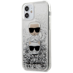 Karl Lagerfeld KLHCP12SKCGLSL iPhone 12 mini 5,4" sidabro/aukso spalvos kietas dėklas su skystais blizgučiais Karl&Choupette
