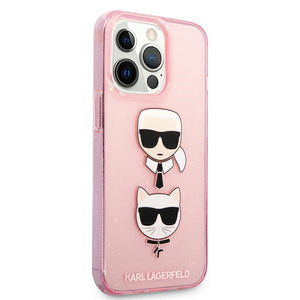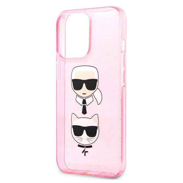 Karl Lagerfeld KLHCP13LKCTUGLP iPhone 13 Pro / 13 6,1 colio raudonas/rožinis kietas dėklas Glitter Karl's & Choupette