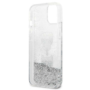 „Karl Lagerfeld“ skysto blizgučio „Karl&Choupette“ dėklas „iPhone 13 mini“ – sidabrinis
