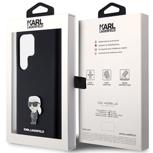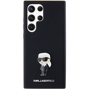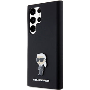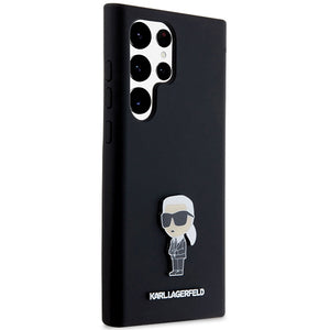 Karl Lagerfeld silikoninis „Ikonik Metal Pin“ dėklas, skirtas „Samsung Galaxy S23 Ultra“ - juodas