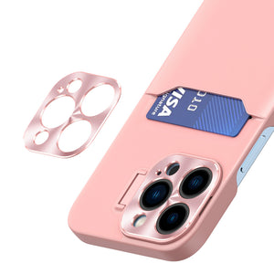 iPhone 14 Pro Leather Stand Case with Card Slot and Kickstand in Pink