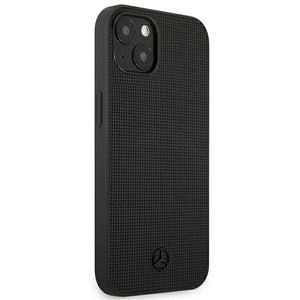 Mercedes Leather Meshed Metal Logo Case for iPhone 13 - Black