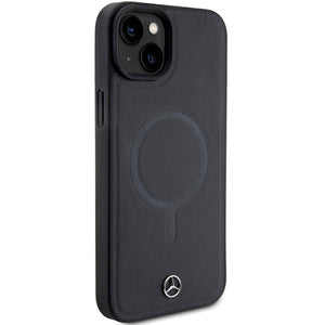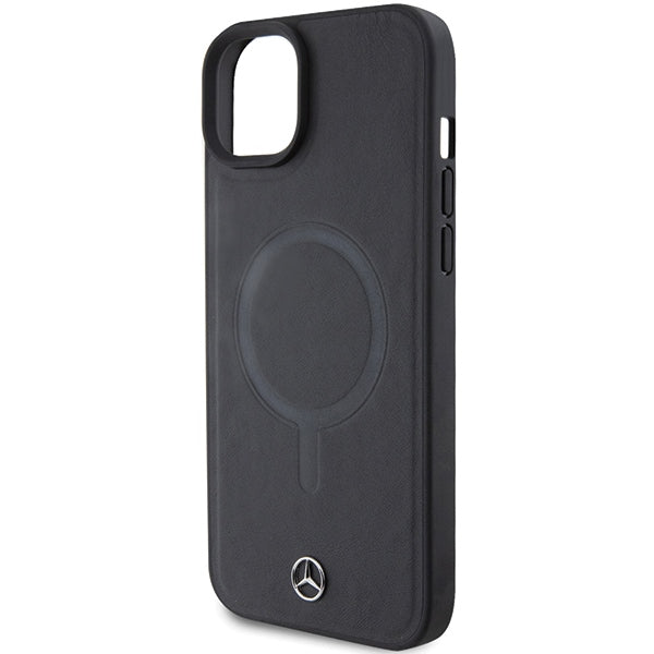 Mercedes Smooth Leather MagSafe case for iPhone 15 Plus - black