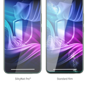 „SilkyMatt Pro“ – tai moderni apsauginė plėvelė, kurios efektyvumas patikrintas dėl smūgiams atsparaus pagrindo. Ji sustiprina ekraną iki 400 %, apsaugodama jį nuo dažniausiai pasitaikančių grėsmių. Kai jūsų išmanusis telefonas liečiasi su klavišais, smėlio dalelėmis arba nukrenta ant kieto betono, „SilkyMatt Pro“ sumažins ekrano įtrūkimų ir įbrėžimų riziką. Naudokite savo telefoną bet kokioje aplinkoje ir nešiokite jį kaip tik norite!