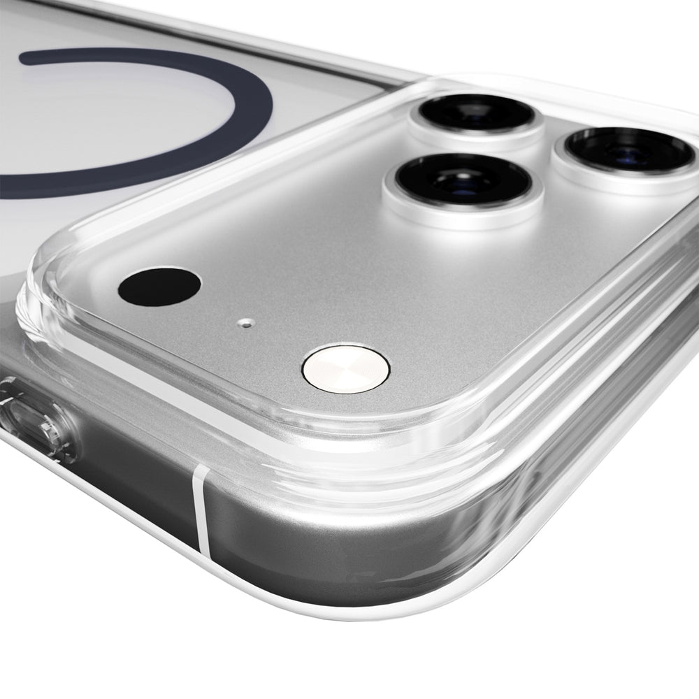 The Puro Lite Mag Case offers reliable protection for the iPhone 17 Pro, combining functionality with a sleek design. Full MagSafe compatibility lets you charge wirelessly and charge accessories without removing the case. The TPU and PC construction effectively absorbs shocks, and its durability has been confirmed by drop tests from a height of over 3 meters. The transparent form highlights the device's unique design, while the blue ring adds a modern and stylish touch. This practical case guarantees everyday protection and aesthetics.