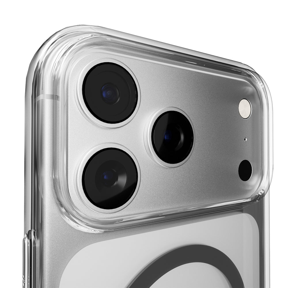 The transparent design retains the original lines of the iPhone 17 Pro, showcasing its design.