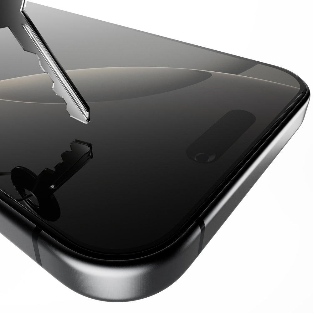 „Puro“ grūdintas stiklas, skirtas „iPhone 16 Pro Max“, yra 9H kietumo, todėl yra itin atsparus kasdieniams įbrėžimams ir pažeidimams. Telefoną galite saugiai laikyti kišenėje su raktais ar kitais kietais daiktais – stiklas efektyviai apsaugos ekraną ir užtikrins ilgalaikį jo patvarumą.