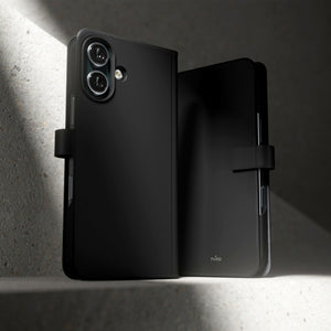 „Puro Wallet“ nuimamas „MagSafe 2in1“ PU odos dėklas su atvartu ir dėklu, skirtas „iPhone 16“ – juodas