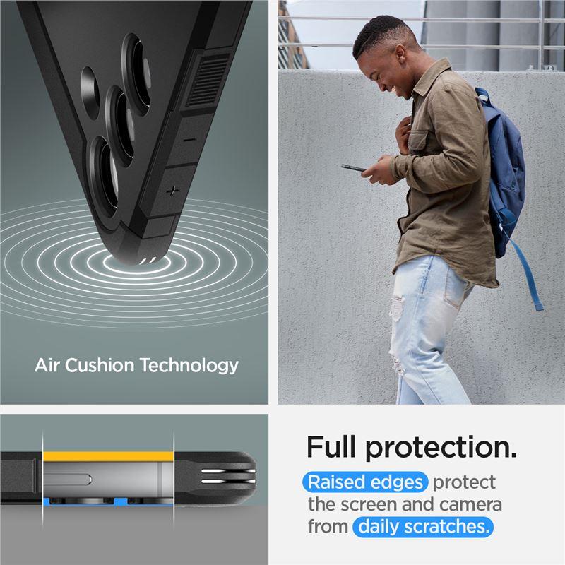 Dėklas iš „Tough Armor“ serijos „ Spigen “ – tai naujasis bendrovės dangtelis. Jo dviejų dalių konstrukcija pagaminta iš dilimui atsparaus termoplasto ir sutvirtinančio polikarbonato rėmo. Dangtelio viduje yra technologinio putplasčio užpildas, kuris suteikia papildomą apsaugos sluoksnį nuo smūgių ar įrenginio kritimo.