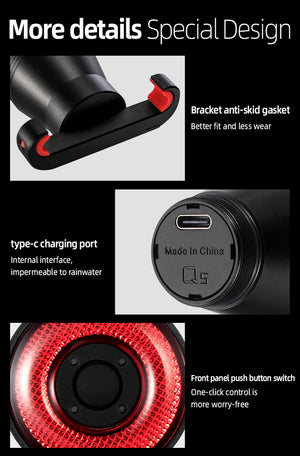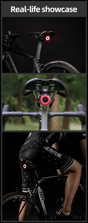 „Rockbros Q5“ galinis dviračio žibintas su išmaniąja stabdymo sistema – juodas