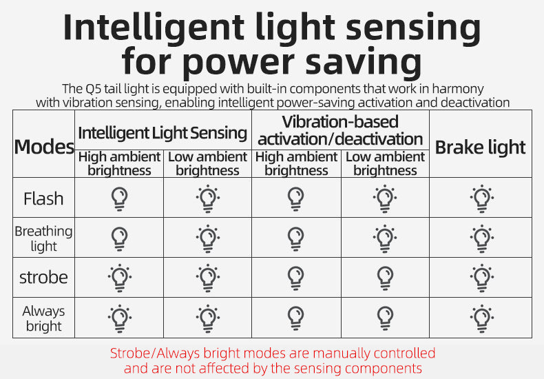 Automatinis šviesos intensyvumo padidinimas stabdant yra labai svarbus siekiant padidinti saugumą važiuojant naktį. Ši funkcija ne tik informuoja kitus eismo dalyvius, kad lėtinate greitį, bet ir efektyviai padidina jūsų dviračio matomumą.