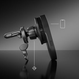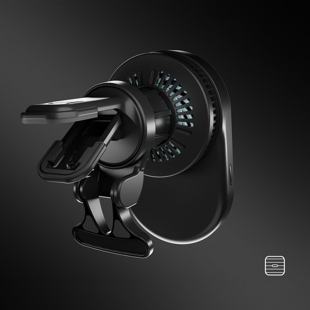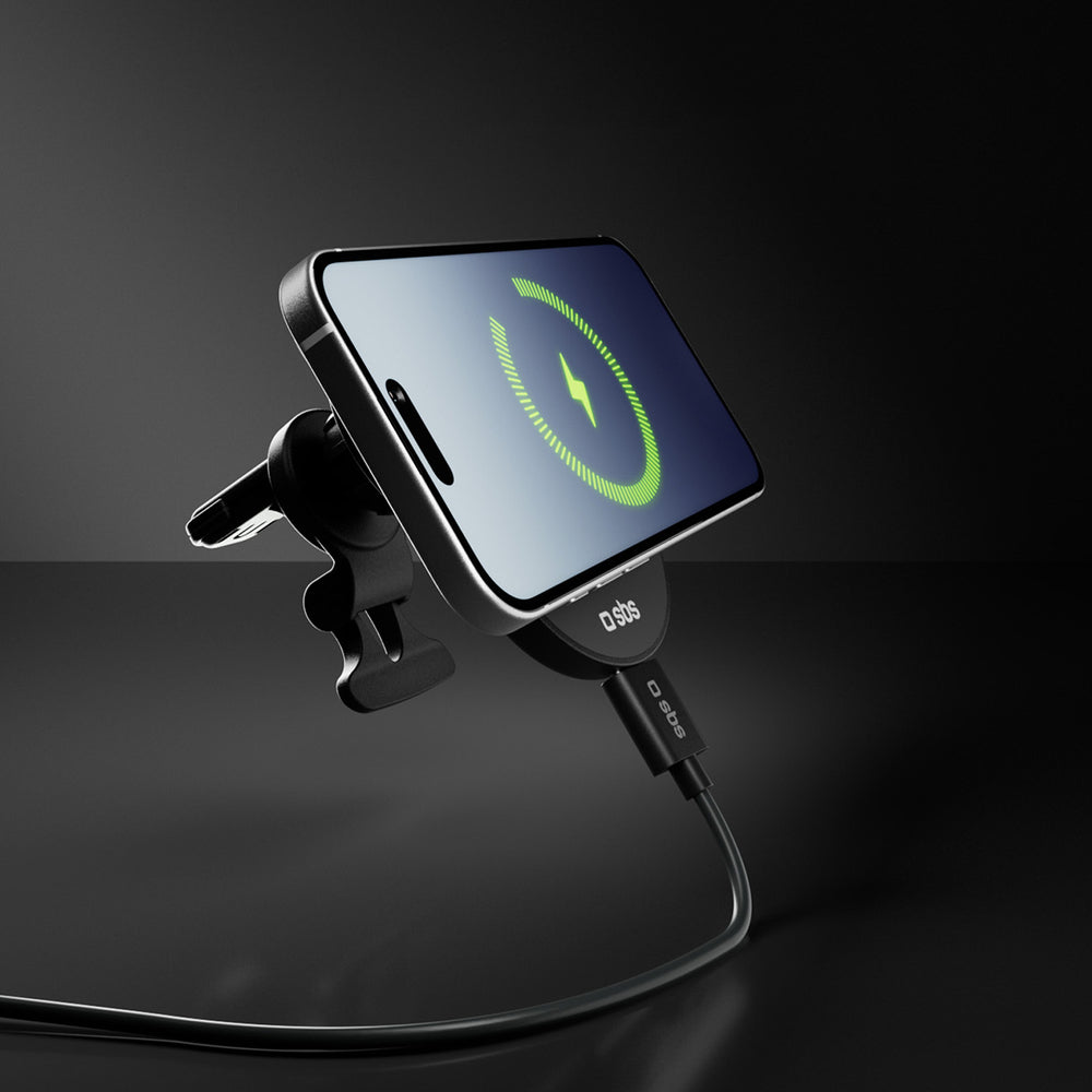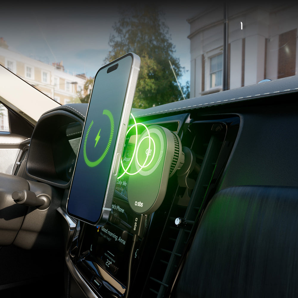 The SBS Magnetic Qi2 25W is a modern car mount with a built-in wireless charger that combines efficiency, safety, and elegance. Using Qi2.2 technology, it provides fast charging at up to 25W, compatible with both MagSafe iPhones and Qi2-certified smartphones. Integrated magnets ensure instant and stable attachment, while the ADS system automatically adjusts power to protect the device from overheating or overloading. Additionally, a built-in fan actively cools the charger, ensuring reliable operation in all conditions.
