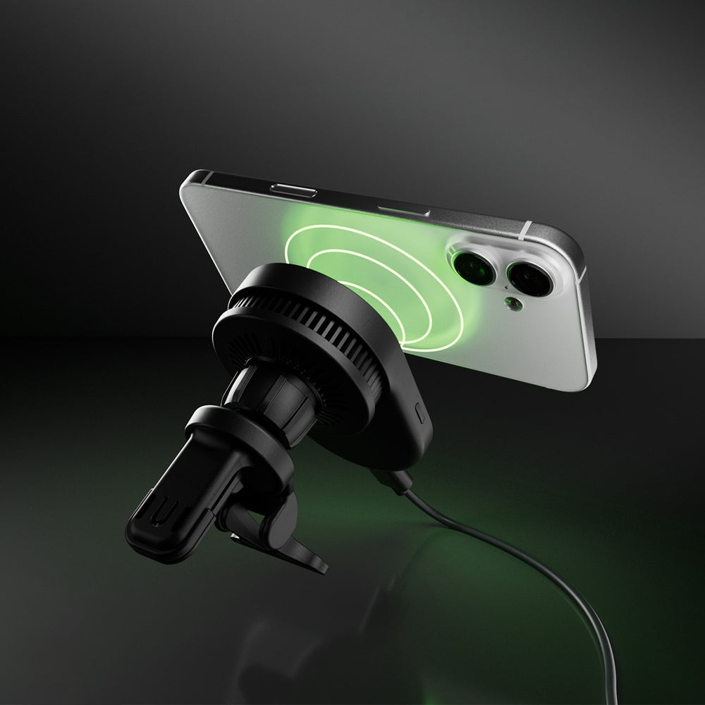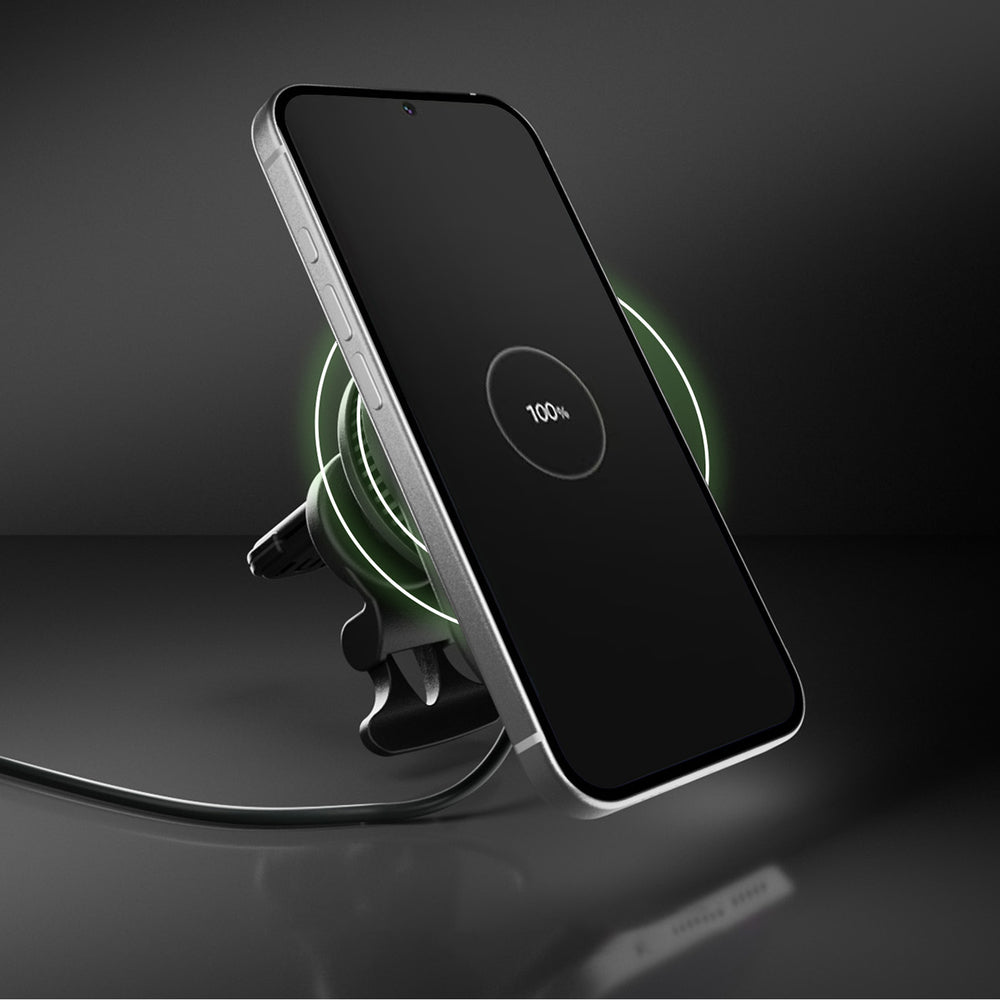 Strong magnets automatically align your phone with the charger, providing a secure grip without the need for mechanical arms or hooks.