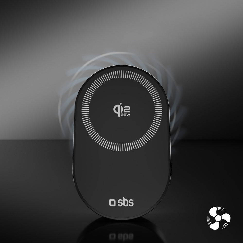 SBS Magnetic Holder with Qi2.2 25W Wireless Charger with Active Cooling - Black