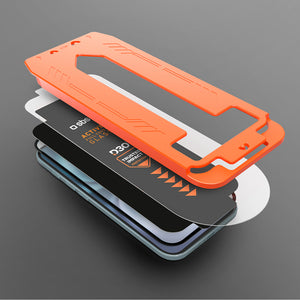 Everything you need to instantly protect your screen – D3O glass, applicator, cloth and dust sticker.