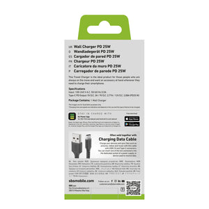 SBS TETR1CPD25 25W USB-C Wall Charger with Power Delivery - Black
