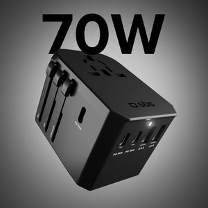 The SBS Universal GaN Travel Adapter 70W is a powerful yet compact travel charger you can take literally anywhere. With four plug types— EU, UK, US, and AUS —the adapter works in almost every country in the world. Simply lift the appropriate slider to access the appropriate connector and begin charging. It's an ideal choice for frequent business or leisure travelers.